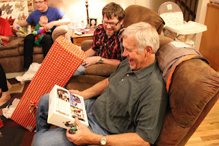 We gave dad his gift in a joke gift box. He's probably thinking in this picture "what the heck!"